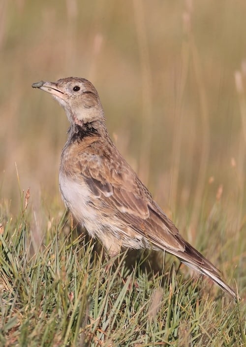 Species AccountA small pale lark with a short, finch-like bill. Usually seen foraging on the ground in open country with shrubs, grasses, and extensive bare soil. -