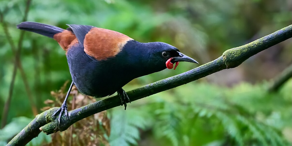North Island Saddleback Philesturnus rufusater -©Geoff McKay CCO 1.0 via Wikimedia Commons