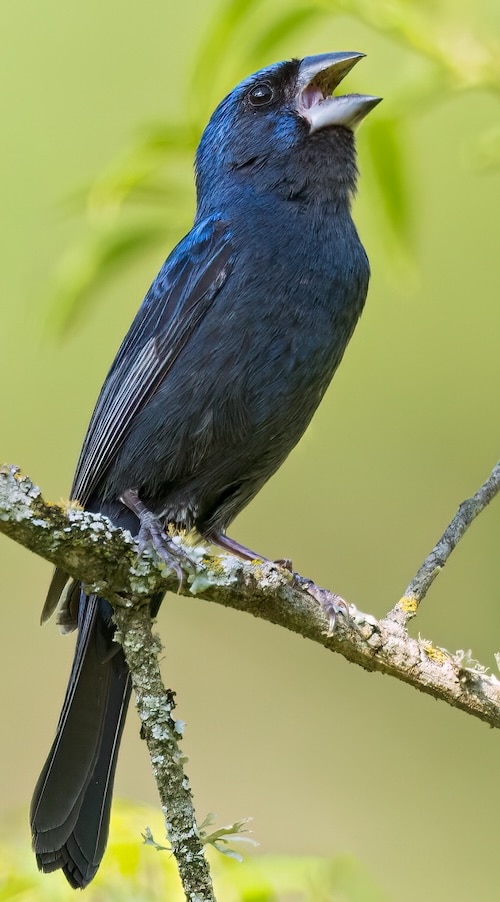 Species AccountBeefy, big-headed, large-billed bunting. Male is deep cobalt blue with rufous wingbars. -