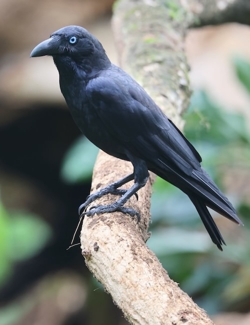 Species AccountA slender, blackish medium-sized crow with a long bill. The grayish nape and sides form a paler collar that contrasts with the glossy black body. -