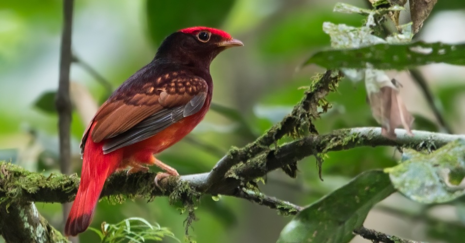 Species AccountHandsome but seldom-seen cotinga of lowland rainforest. Males are brilliant red and dark rich brown; females are duller but identifiable by red and brown... -