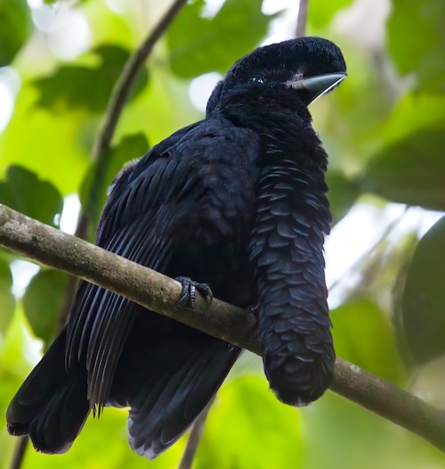 Species AccountLarge, mostly black bird found in the canopy of lowland forests. Male has wine-colored throat that can be puffed out expressively, but is often difficult to... -