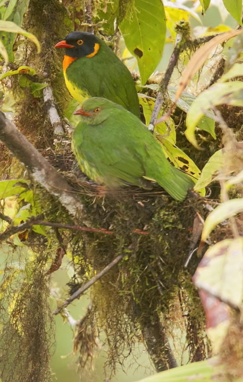 Species AccountPlump, colorful bird of cloud forest along the east slope of the Andes. Plumage is mostly green and yellow, and male has a red throat and breast. -