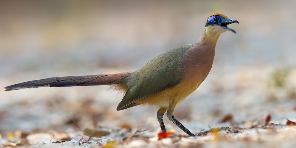 Giant Coua Coua gigas​​ Huge, long-tailed, long-legged bird. Rufous belly and blue-and-pink bare facial skin.