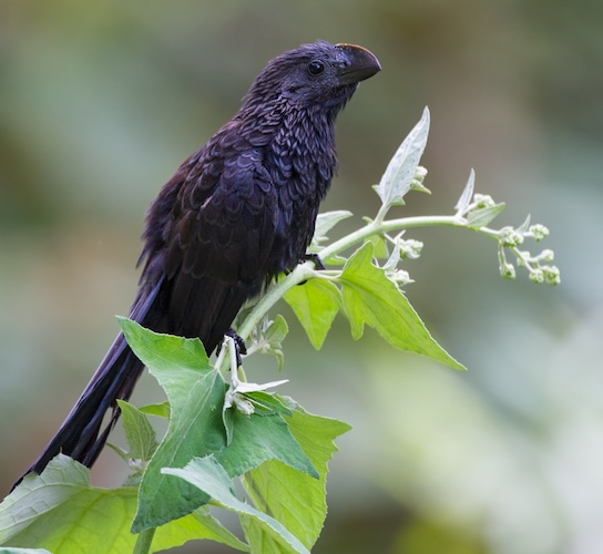The groove-billed ani (Crotophaga sulcirostris) is a tropical bird in the cuckoo family with a long tail and a large, curved beak.