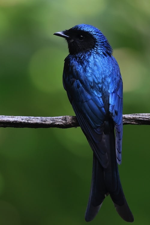 Family Accountdrongos are sleek and shiny black flycatching birds of Africa, Asia, and Australia, the species usually distinguished by rackets or distinctive bends or warps -