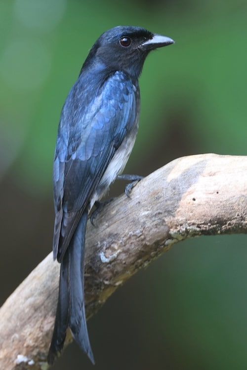 Species AccountLarge drongo with a strongly forked tail. Found in forest, usually in the canopy or on prominent open perches. Often in pairs. -
