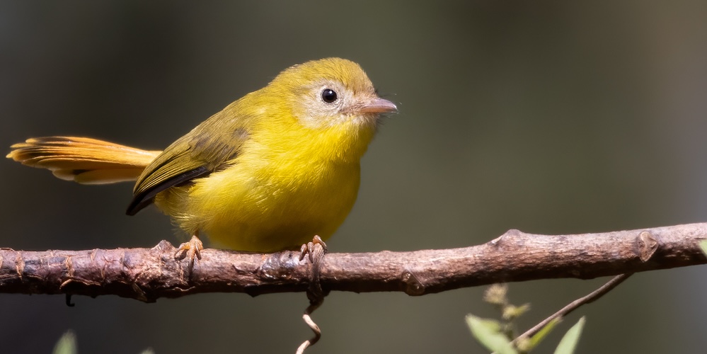 Livingstone’s Flycatcher Erythrocercus livingstonei, is found in Malawi, Mozambique, Tanzania, Zambia, and Zimbabwe. Its natural habitats are subtropical or tropical dry forests and subtropical or tropical moist shrubland, it favours coastal thickets and riverine forest. It has olive underparts, yellow upperparts and a black-banded rufous tail which it spreads or flicks constantly. It has a rapid series of ‘chiut’ calls and a short but melodious and warbling song.