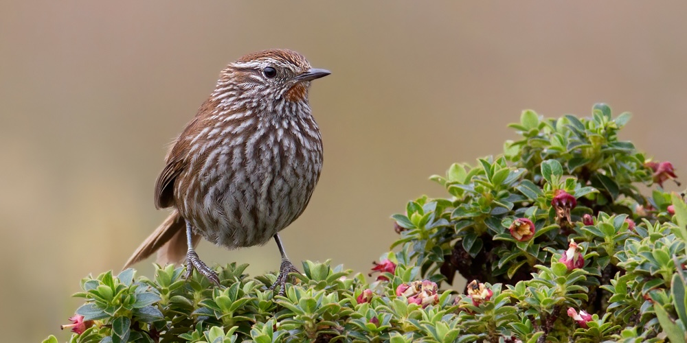 Small rufous-brown bird found in the undergrowth of temperate forest from 2,500–3,700 m.
