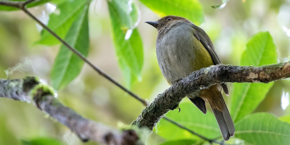 Family AccountThe Olive-flanked Whistler Hylocitrea bonensis lives in montane forest between 1200 and 3500 m, and mainly above 2000 m. -