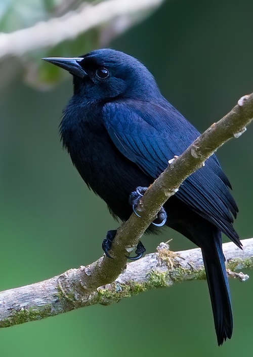 Species AccountMedium-sized, slim blackbird with uniform matte black plumage. -