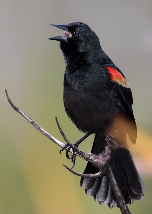 VideoThe Music of Nature proudly presents "Red-winged Blackbird," a delicious video portrait of a male in full song. The Red-winged Blackbird is common across North America, breeding in marshes and meadows. Excited males puff out their red epaulets (shoulder pads) as they sing.