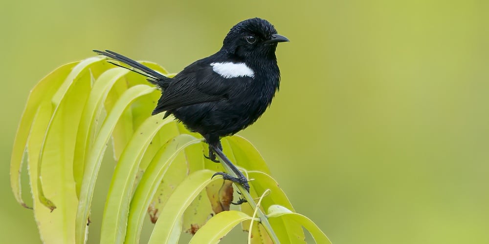 Species AccountA small bird with a long tail that it often cocks. Male is all black with a white shoulder patch. -