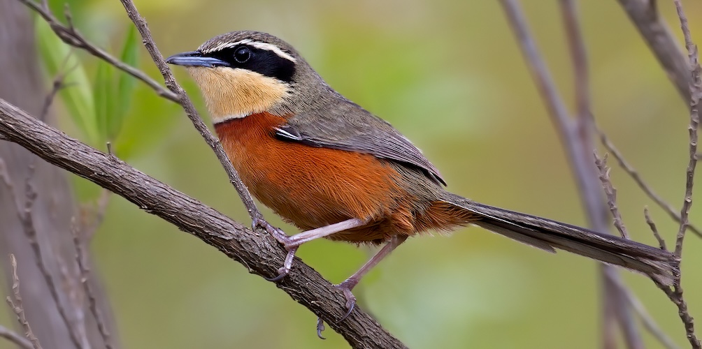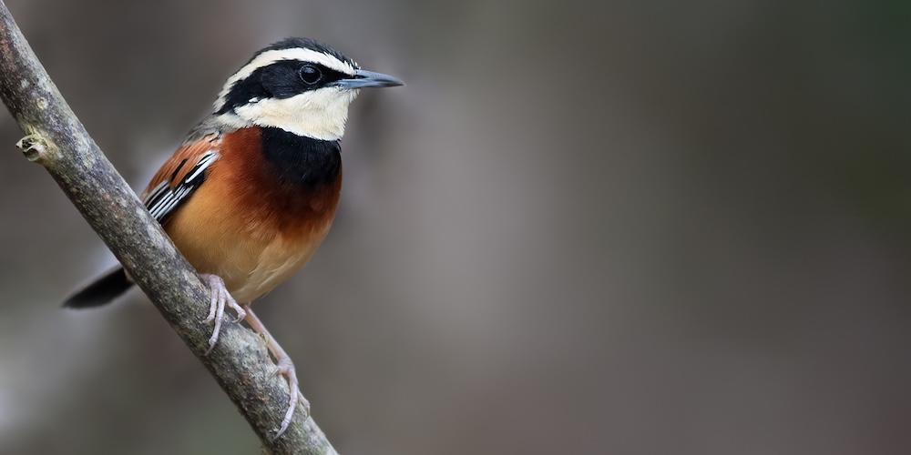 Cornell Species AccountA striking little bird, shaped like a robust gnatcatcher. Note the bold black-and-buff head pattern, black chest fading to rufous flanks, and bright rufous on... -