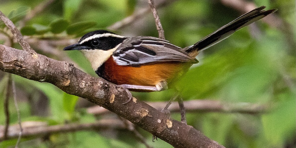 Cornell Species AccountA striking little bird, shaped like a robust gnatcatcher. Note the bold black-and-buff head pattern, black chest fading to rufous flanks, and bright rufous on... -