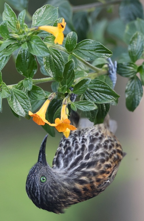 As noted, there are variations. For example, Red Wattlebirds and Noisy Friarbirds have long breeding seasons with multiple attempts. Their clutches are two to three eggs and incubation and nesting can last around 16 days. Black-chinned Honeyeaters are communal breeders and have helpers. They raise multiple broods and are often parasitised by cuckoos. Brown Honeyeaters are solitary nesters. They breed year-round in the right conditions and produce small clutches, usually two eggs which the female incubates alone although both parents feed the Young.