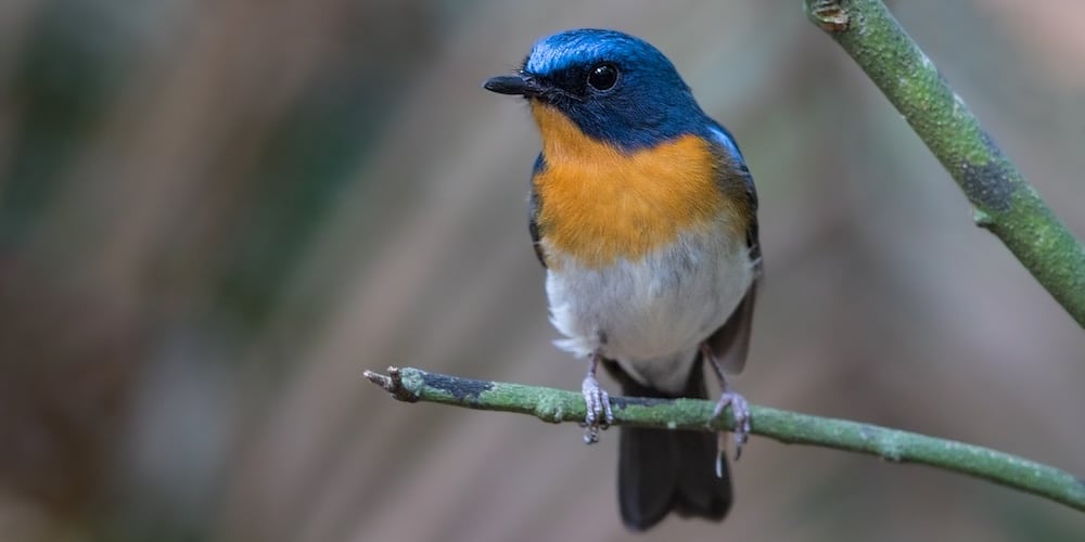 Species AccountAttractive long-tailed flycatcher with an orange throat and breast. Male is ocean blue above, with a darker face and brighter orange on the underparts. -