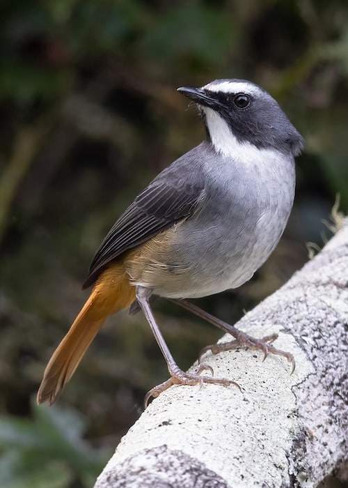 Species AccountA fairly plain brown-and-orange robin-chat with a white eyebrow and a dark face. As in most robin-chats, the tail has a dark center and orange edges. -