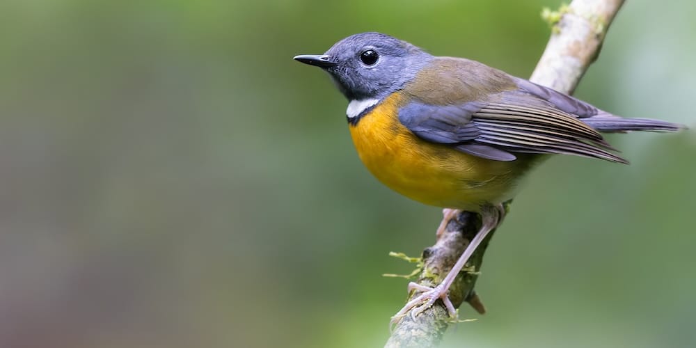 Species AccountMale is slaty-blue with a white eyebrow, dark face, and orange underparts. -