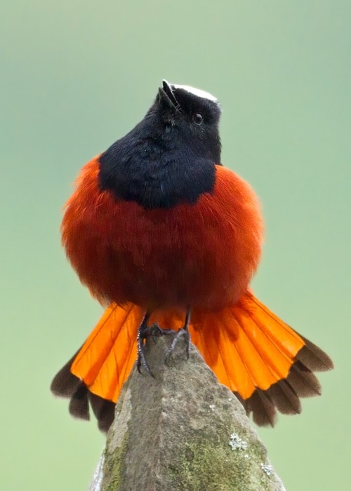 Species AccountChunky, brightly-colored redstart found along rushing boulder-strewn mountain streams. -