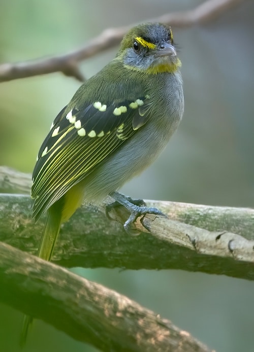 Western Nicator Nicator chloris​​ The yellow corners of the tail can be conspicuous in flight. Found in rainforest, gallery forest, thickets, lush secondary...