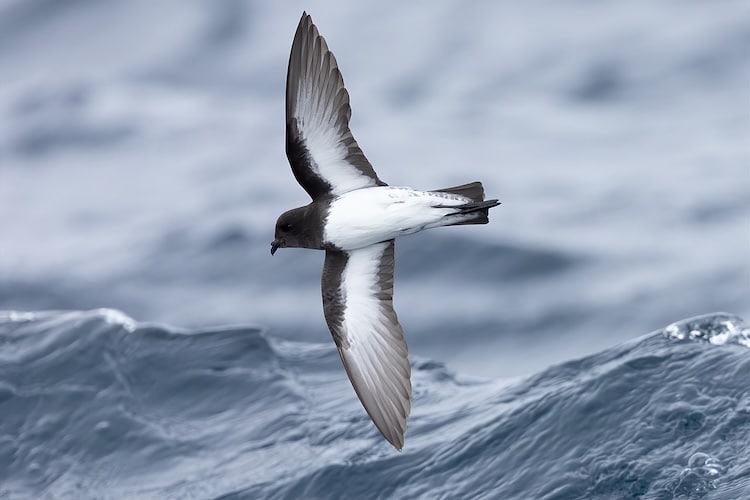 Species AccountA very small seabird of southern oceans. Gray-black on head, neck, throat, and top of breast. Back and upperwing are paler in color and rump is ash-gray. -