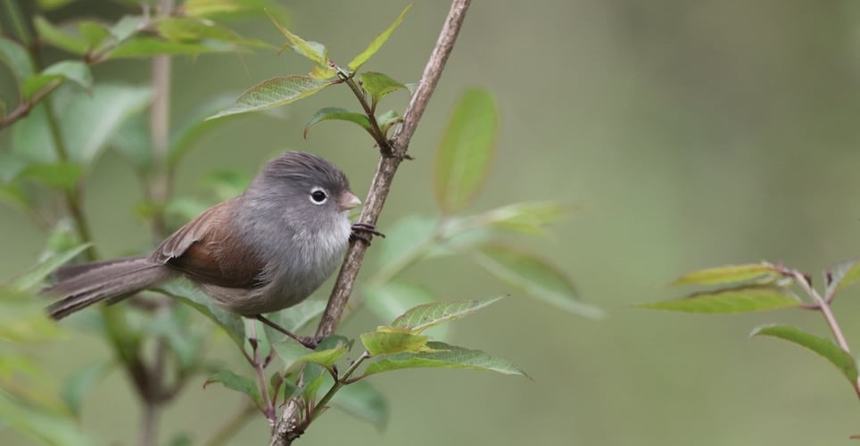 Gray head, white eyering, and frequently raised bushy crest set this parrotbill apart from others in its range. Inhabits isolated mountaintop forests...