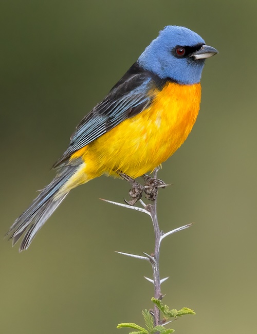 The Thraupidae comprises the tanagers and allies. The family has a neotropical distribution. The Thraupidae are the second-largest family of birds and represent about 4% of all avian species and 12% of the Neotropical birds. Traditionally, about 240 species of tanagers were described, but the taxonomic treatment of this family’s members is currently in a state of flux. Even more confusing is that the rearrangement of species means there are many birds with ‘tanager’ in their common name that are now reassigned to the Cardinalidae, such as the widely distributed Scarlet and Western Tanagers. By the same token the Thraupidae includes many species with ‘finch’ in their common names.