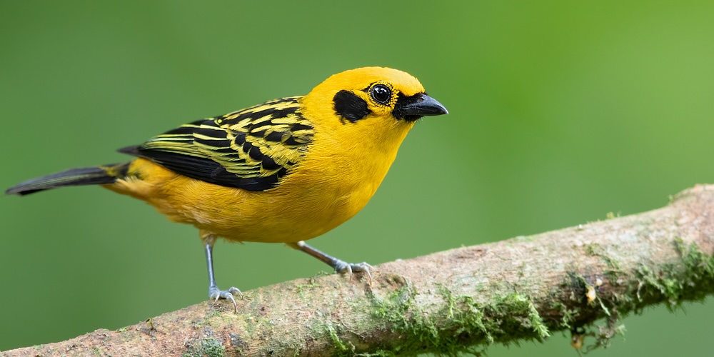 Species AccountHooded Mountain-Tanager is bright lemon-yellow below with a blue back and mostly black head. -