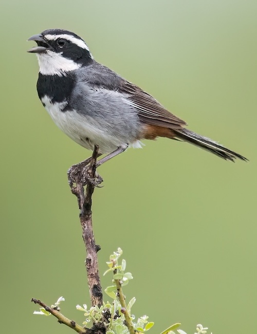 Species AccountSmall, dark gray bird of highland forest. Gray plumage is set off by chestnut undertail coverts and black mask and chin, which contrast with the pale silvery... -
