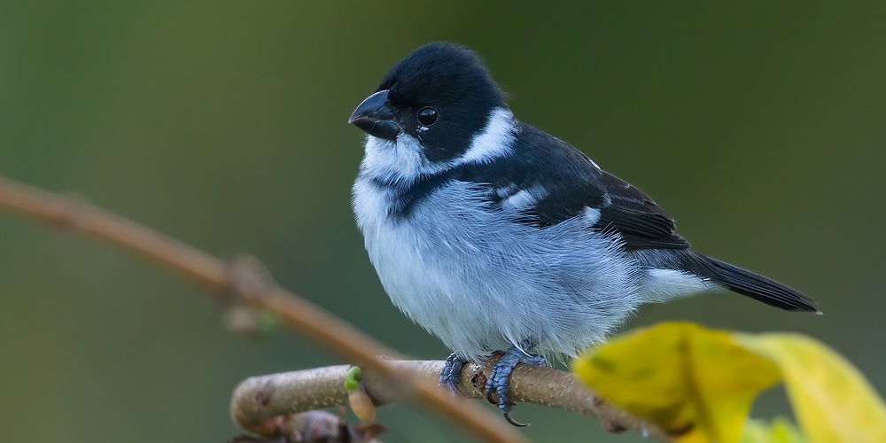 Species AccountA large and rather parrot-billed Galápagos finch. Male has a black hood and bill, a sooty back, and a yellowish belly with dark streaks. -