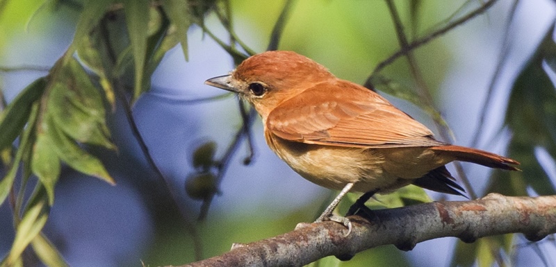Species AccountMedium-sized, overall rusty-colored bird of evergreen forest edge and clearings in humid tropical lowlands. Usually seen as singles or pairs at middle to... -