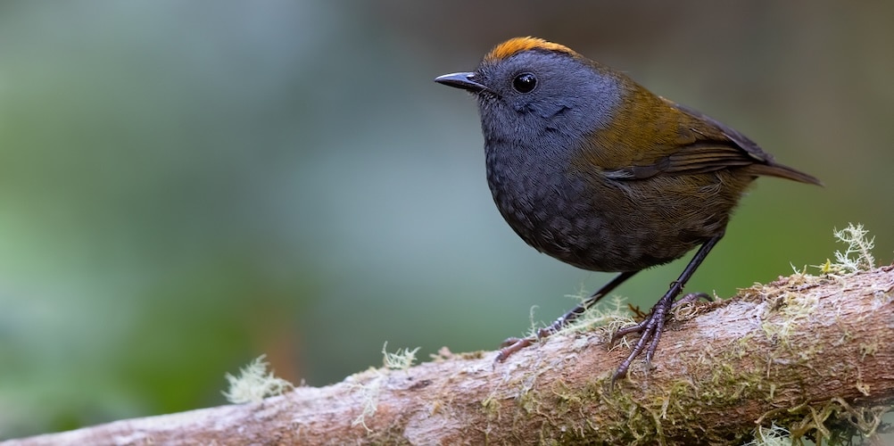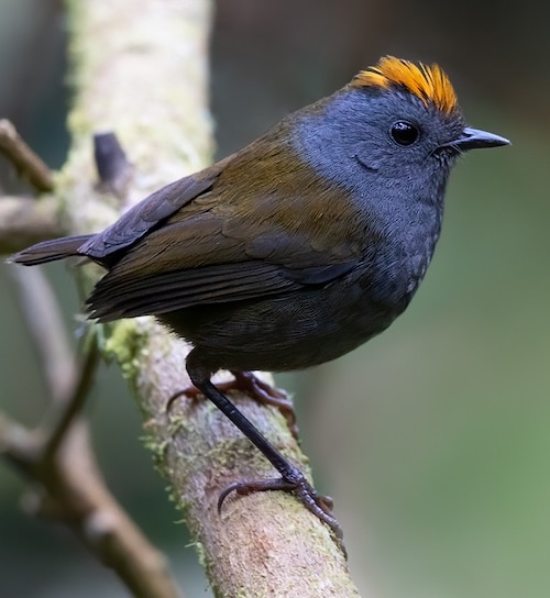This secretive skulker of cloud-forest thickets in the mountains of Costa Rica and Panama, about which very little is known, has a fiery crown that is reminiscent of a kinglet’s, as are its simple few-note sibilant calls. It forages furtively in the low branches of shrubbery, recalling a stealthy wren, and it is hard to localise in the dense misty habitats that it haunts. Future work could probably tell us much about this species’ life history, especially regarding its breeding biology.