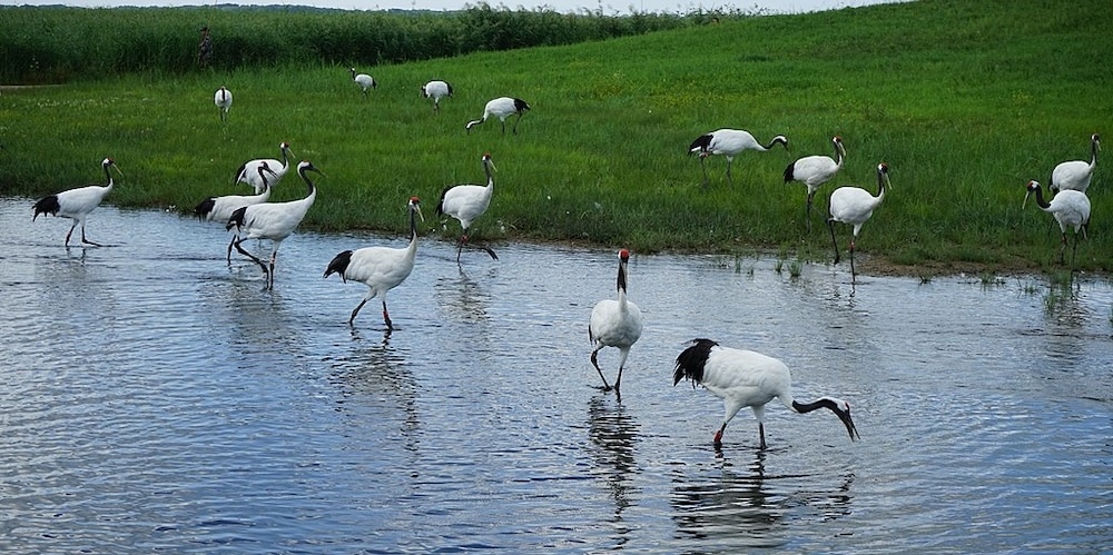 A system of permanent and seasonally flooded freshwater marshes, shallow lakes and ponds, with extensive reedbeds and grasslands. Its ponds and reeds make it an ideal home for over 300 different species of birds. It is protected by the Chinese government. Within the park, a large flock of red-crowned cranes is held in captivity for conservation purposes. The reserve is listed as a Ramsar Wetland of International Importance...NR