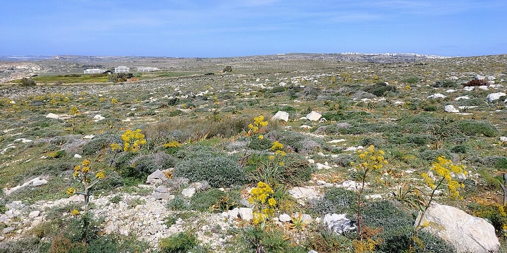 Maquis is found mainly along valley sides. It is a habitat of mainly small trees and large shrubs. It is a more sheltered environment with deeper soil and more water. Typical trees include olive, carob, lentisk, bay laurel and ‘bear’s breeches’. Garigue is a widespread habitat, which develops on karstland or as a result of a degraded maquis. It is an exposed habitat with little soil and sparse water. This is a habitat dominated by low vegetation, especially hardy aromatic shrubs. There are three types of plants: annuals, which grow in winter and spend the summer as seeds; geophytes, which are perennial plants with a dormant stage as bulbs and evergreen, which are perennials which live throughout but must be adapted. Typical plants include Mediterranean heath, wild thyme, olive-leaved germander, Maltese spurge, rock roses and Maltese pyramidal orchid.