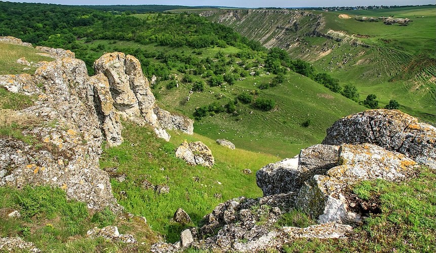 While most of the country is hilly, elevations never exceed 1,500 feet, the highest point being the Bălănești Hill. Moldova’s hills are part of the Moldavian Plateau, which geologically originate from the Carpathian Mountains. Its subdivisions in Moldova include the Dniester Hills (Northern Moldavian Hills and Dniester Ridge), the Moldavian Plain (Middle Prut Valley and Bălți Steppe), and the Central Moldavian Plateau (Ciuluc-Soloneț Hills, Cornești Hills. In the south, the country has a small flatland, the Bugeac Plain. The territory of Moldova east of the river Dniester is split between parts of the Podolian Plateau, and parts of the Eurasian Steppe. Moldova’s exceptionally rich Chernozem soil covers around three-quarters of the country’s land area.