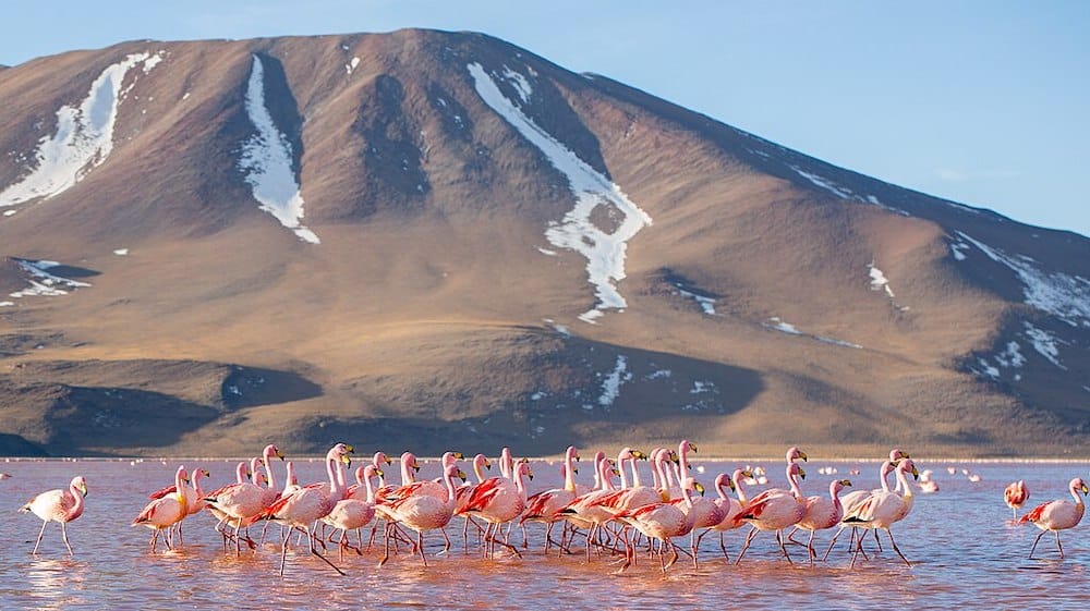 James’s Flamingoes in Laguna Colorada – ©Havardtl, CC BY-SA 4.0 via Wikimedia Commons